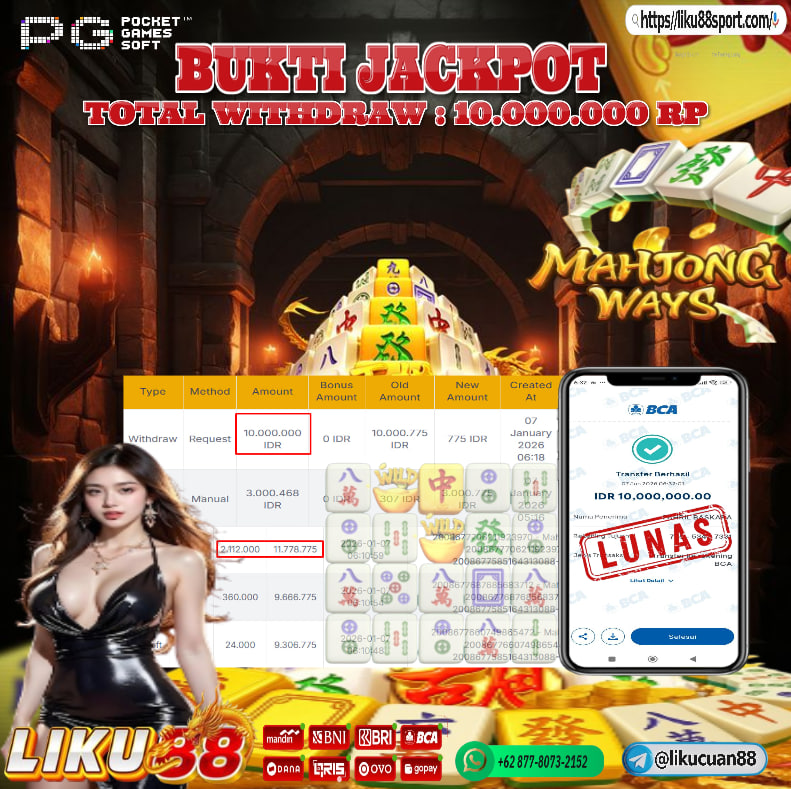 Semua dana kemenangan, termasuk jackpot besar, akan ditransfer hingga lunas tanpa biaya tambahan. Kami menjamin tidak ada pending yang tidak jelas di LIKU88.