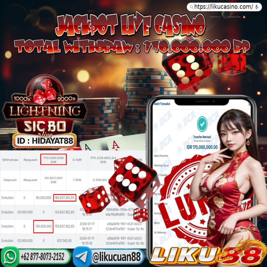 Semua dana kemenangan, termasuk jackpot besar, akan ditransfer hingga lunas tanpa biaya tambahan. Kami menjamin tidak ada pending yang tidak jelas di LIKU88.