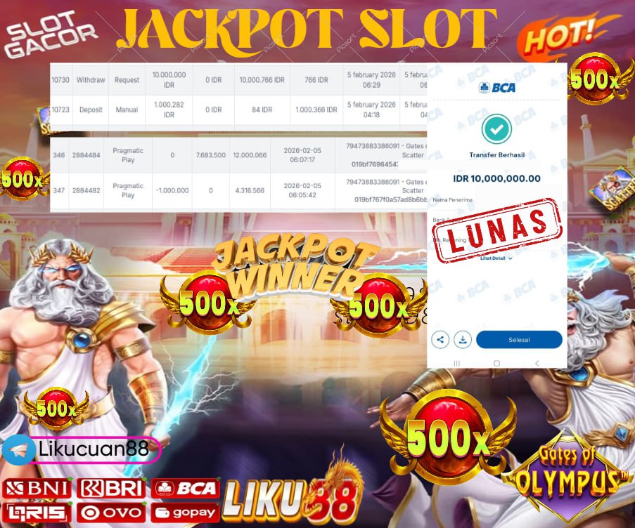 LIKU88 JACKPOT SLOT PRAGMATIC GATES OF OLYMPUS Rp.10.000.000,- LUNAS