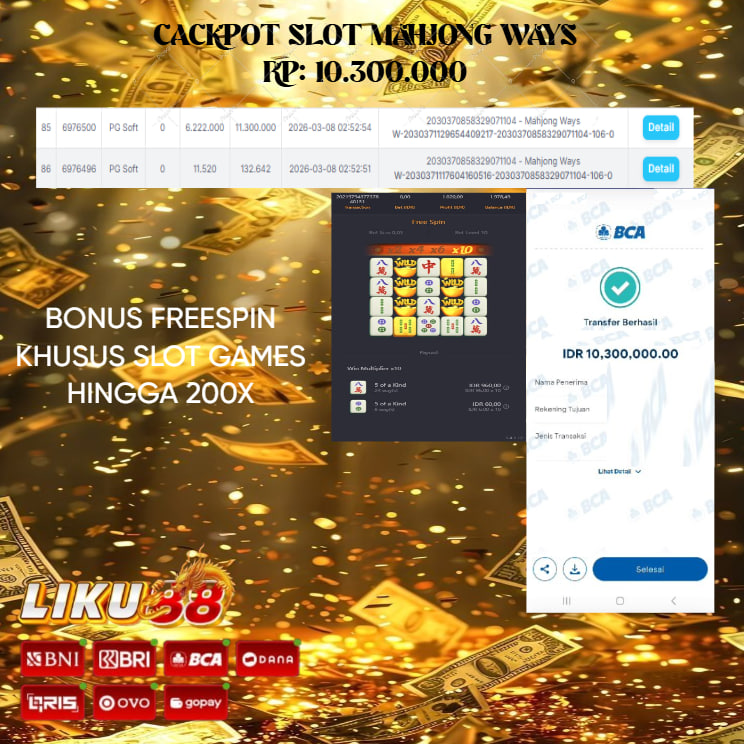 LIKU88 Bandar Slot Online, Live Casino & Taruhan Bola yang menyediakan bonus deposit freespin terbesar berikut minimal transaksi :