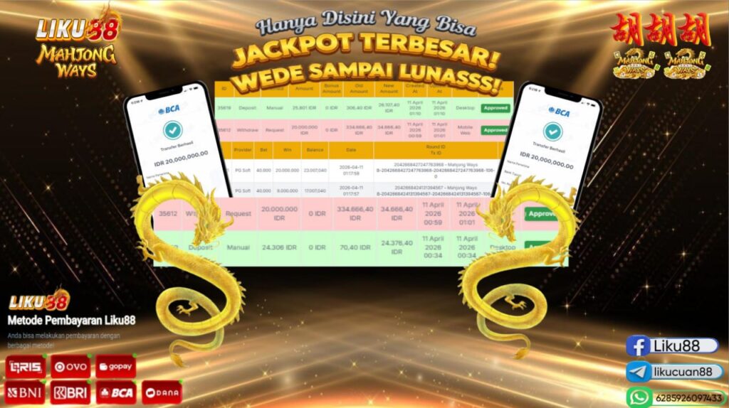 LIKU88 JACKPOT SLOT MAHJONG WAYS Rp.20.000.000,- LUNAS